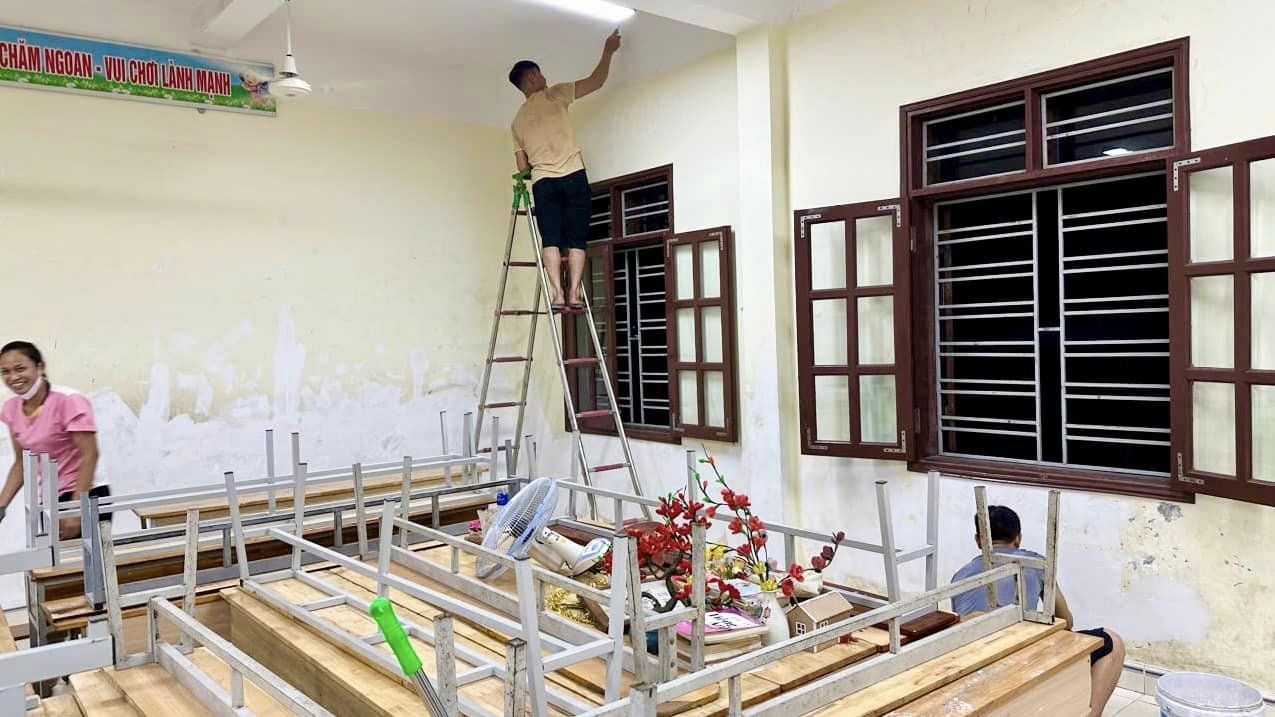 Hình ảnh đêm khuya không ngại mệt nhọc sau công việc, các bậc phụ huynh đã cùng nhau sơn sửa lại phòng học, vệ sinh lớp học và thậm chí là sửa chữa bàn, ghế, bảng viết,... là một hình ảnh sinh động mà chúng tôi không thể nào quên. Quý phụ huynh, tay cầm những dụng cụ lao động, miệt mài từng chút một để đảm bảo mọi thứ hoàn thành kịp cho các con đón phòng học mới vào thứ Hai đầu tuần.