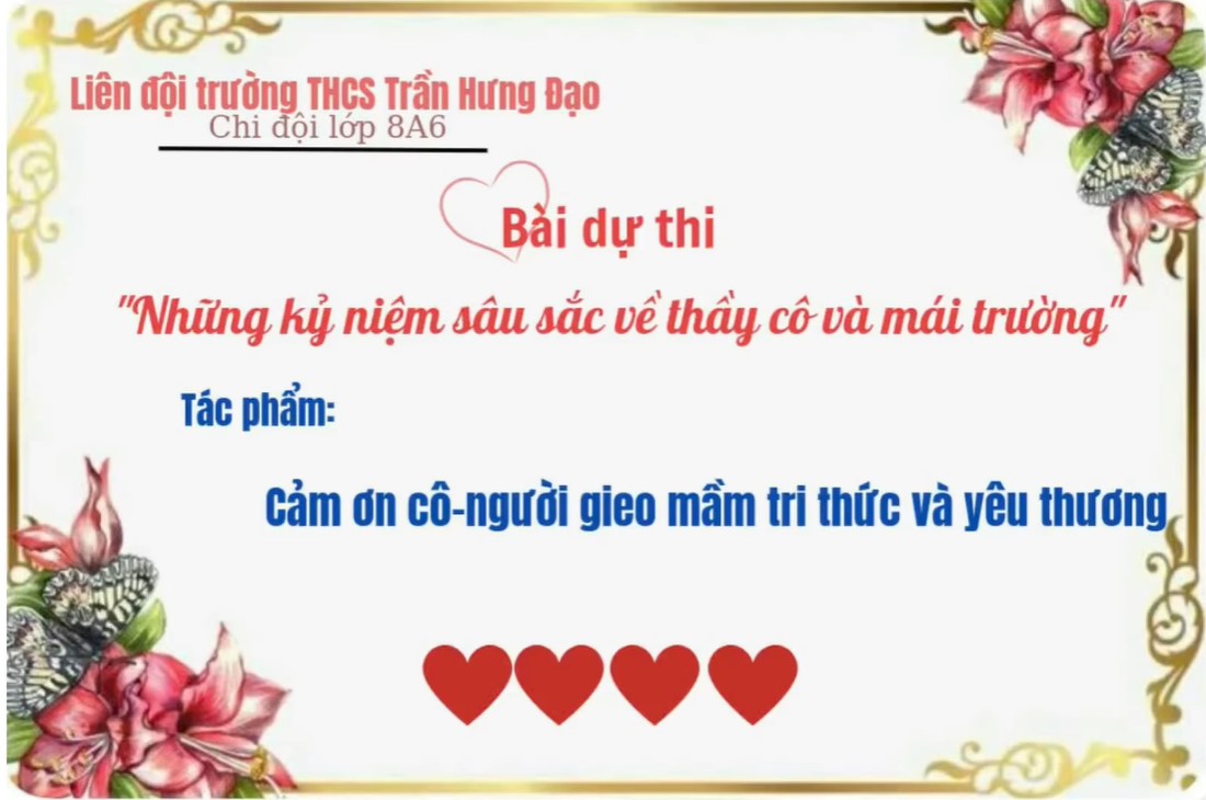 Cuộc thi: Những kỷ niệm sâu sắc về thầy cô và mái trường, dành cho các bạn học sinh của trường THCS Trần Hưng Đạo.