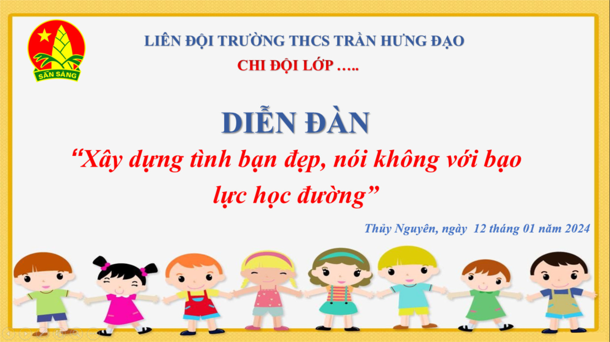 🍀 Sáng ngày 12/01/2024, 100% các chi đội trong toàn trường đã thực hiện Diễn đàn “Xây dựng tình bạn đẹp – Nói không với Bạo lực học đường “.