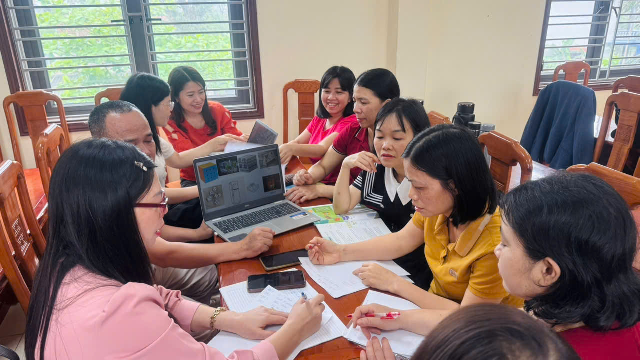 Buổi sinh hoạt là dịp để giáo viên trong tổ chia sẻ kinh nghiệm, phát triển tư duy sáng tạo và tăng cường năng lực xây dựng bài học theo định hướng phát triển phẩm chất và năng lực học sinh.