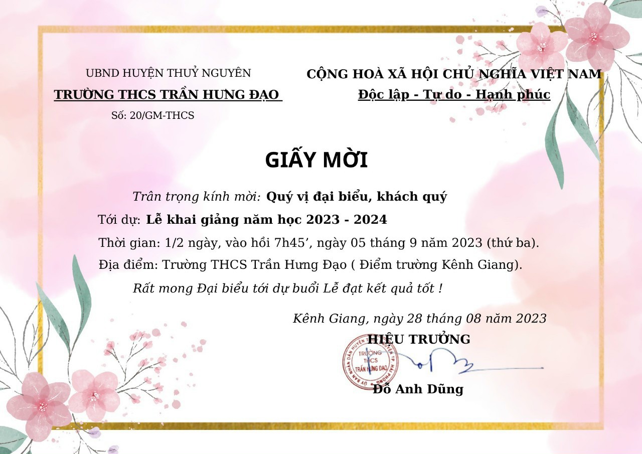 Giấy mời dự khai giảng năm học 2023 - 2024