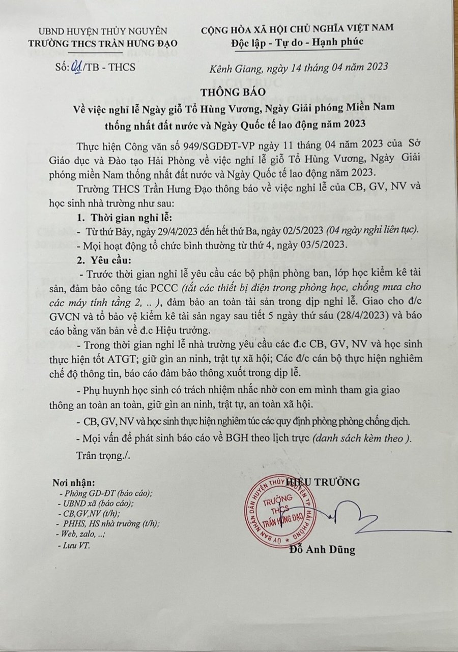 • Thông báo lịch nghỉ tết Nguyên Đán Quý Mão 2023 và Lịch trực tiết nhà trường