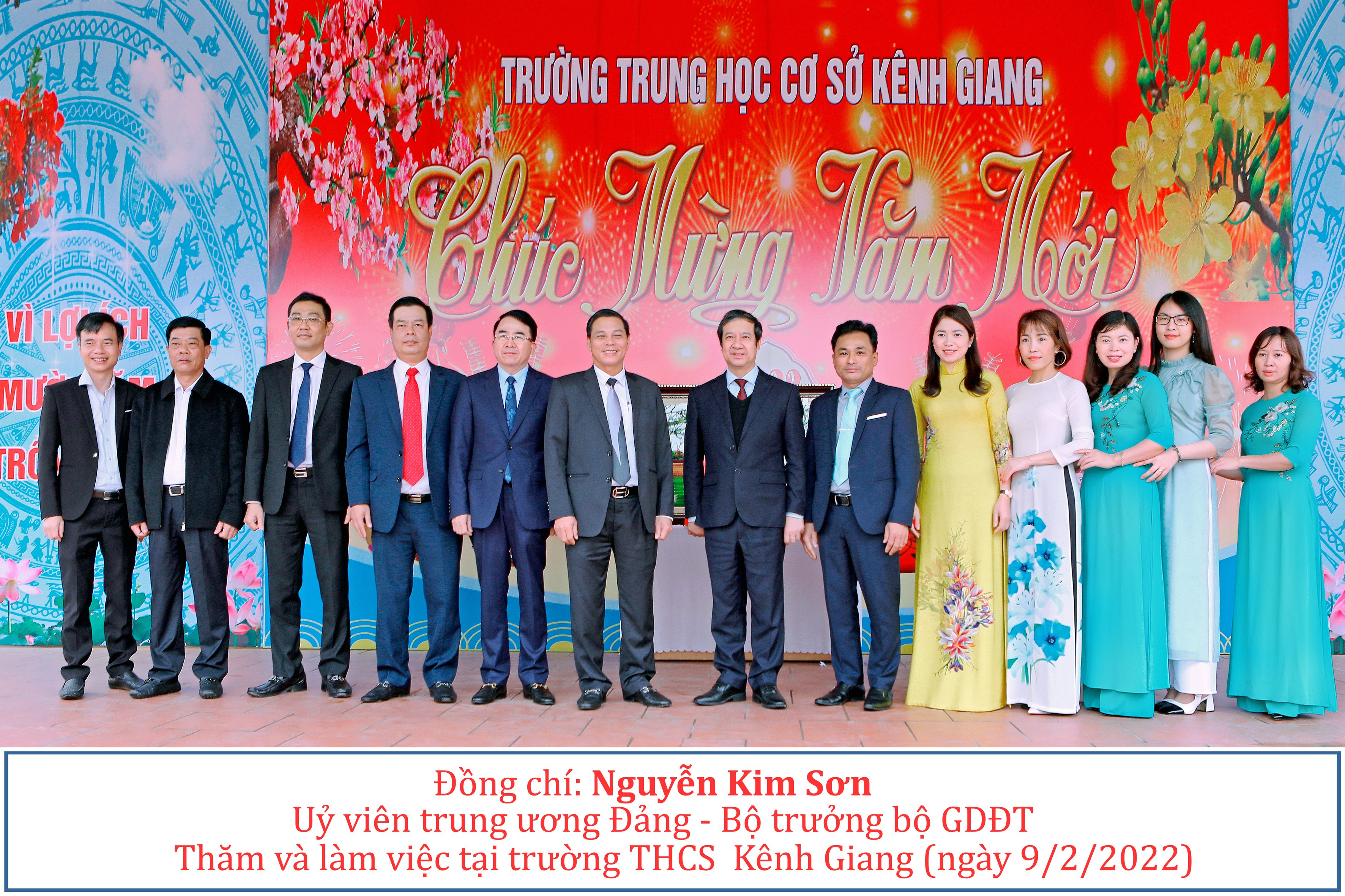 (Bộ trưởng Bộ GD-ĐT Nguyễn Kim Sơn Uỷ viên trung ương Đảng về thăm và làm việc tại trường THCS Kênh Giang,Ngày 09/2/2022 )