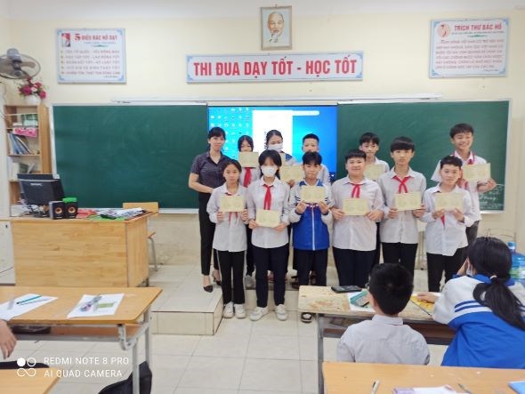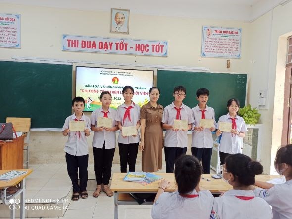 Tại buổi sinh hoạt, Liên đội cũng đã trao giấy chứng nhận Hoàn thành chương trình rèn luyện đội viên cho các em đội viên.