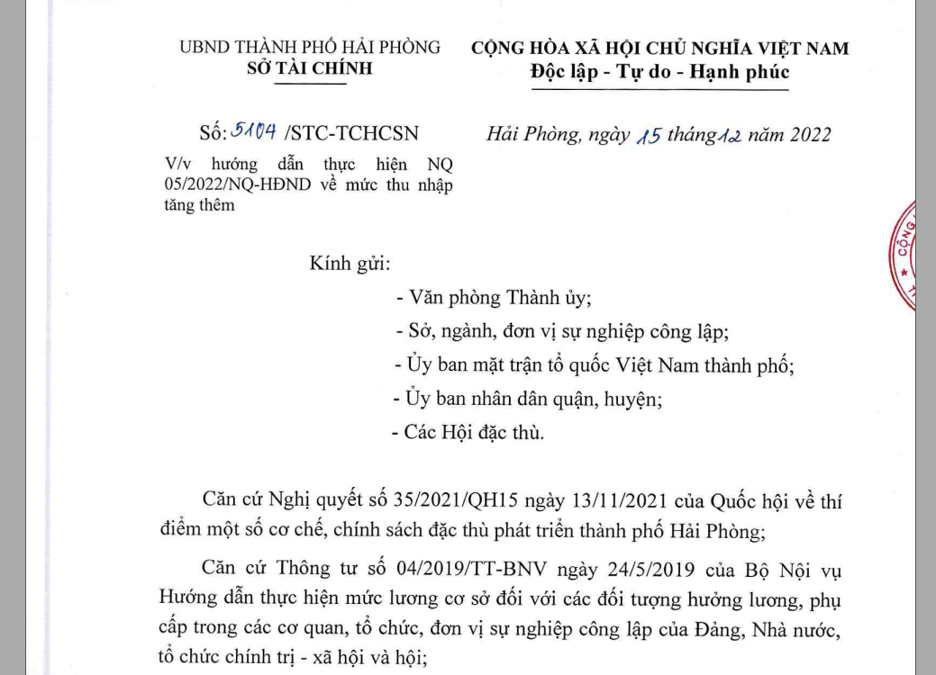 V/v Hướng dẫn thực hiện nghị quyết 05/2022/NQ-HĐND về mức thu nhập tăng thêm